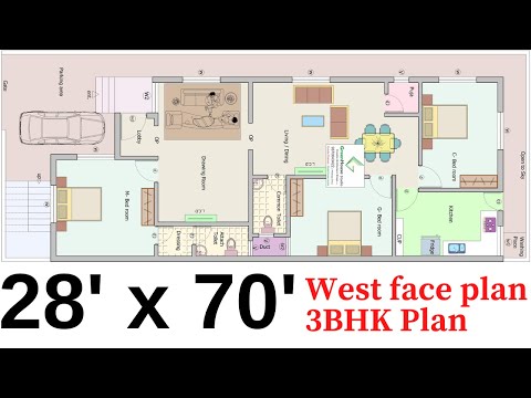 This is a ground floor plan. The plot face is west facing. For the plot, the road has only a west side other three sides are other property. So we kept, 3'6" and the north side 3'6" passage for light ventilation. This is three bedrooms plan. The main door is north facing. The Kitchen is in the southeast corner. The children's bedroom is in the northeast corner, And the master bedroom is in the southwest corner. The staircase is externally provided. A plan s very beautifully designed by us because in 1960 sq. ft you get 3bhk with car parking and with the dining hall.